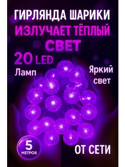 Гирлянда-шарики снежинки фиолетовый, от сети 20led, 5м