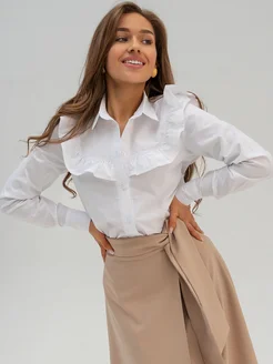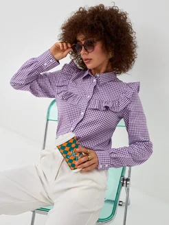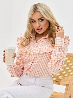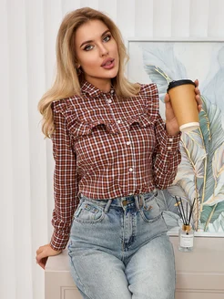 Рубашка блузка с воланами и рюшами хлопковая в клетку