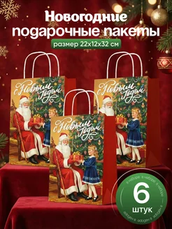 Пакеты новогодние подарочные на Новый год набор 6 штук