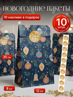 Пакеты новогодние для подарков крафт бумажные набор 10 шт