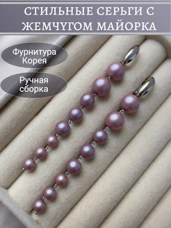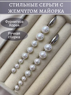 Серьги бижутерия длинные висячие с жемчугом майорка