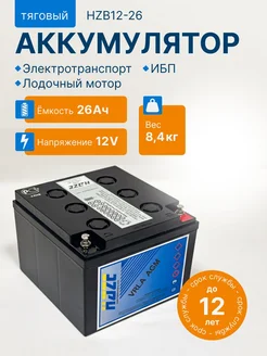 Портативный мощный аккумулятор HZB12-26 свинцово-кислотный