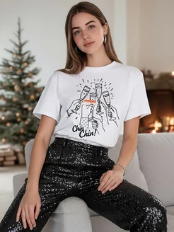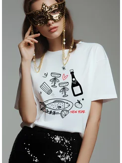 Футболка с принтом оверсайз новогодняя 2026 подарок
