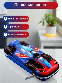 Пенал школьный 3D Машинка вместительный твердый чехол