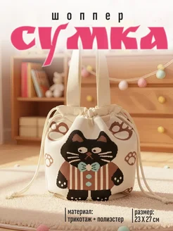Сумка шоппер детская с котиком на плечо