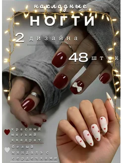 Накладные ногти набор 48 шт с сердечками красные белые