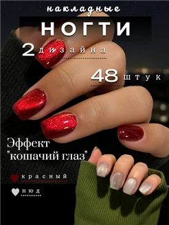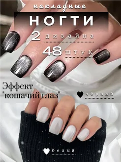 Накладные ногти короткие набор 48 шт кошачий глаз