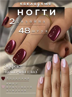 Накладные ногти короткие набор 48 шт кошачий глаз бордовые