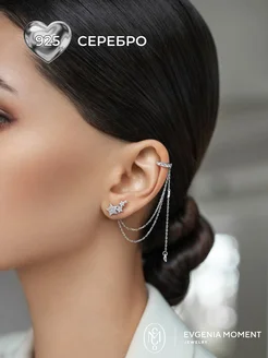 Серьга-кафф и пусета Ласточки серебро 925