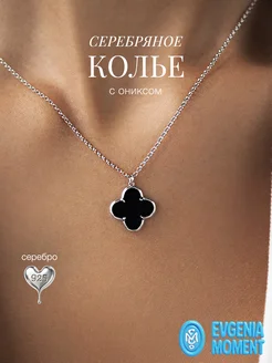 Колье Клевер с черным ониксом серебро 925