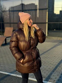 Куртка дутая шоколадная с поясом