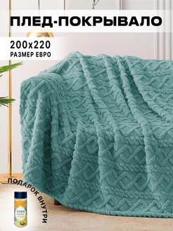 Плед мягкий на кровать и диван евро 200х220, бирюзовый