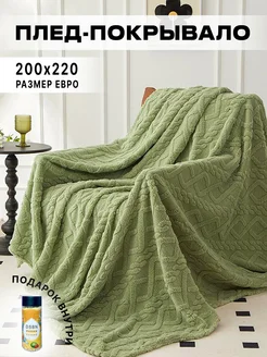 Плед мягкий на кровать и диван евро 200х220, оливковый
