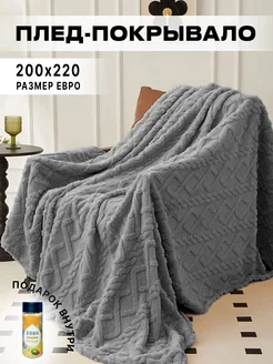 Плед мягкий на кровать и диван евро 200х220, графит