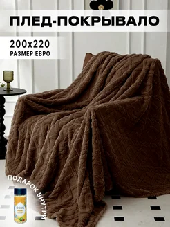 Плед мягкий на кровать и диван евро 200х220, коричневый