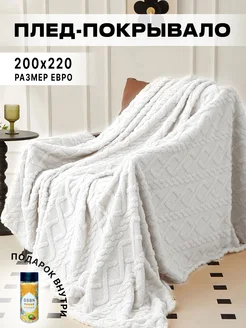 Плед мягкий на кровать и диван евро 200х220, белый