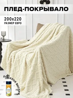 Плед мягкий на кровать и диван евро 200х220, молочный