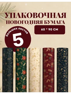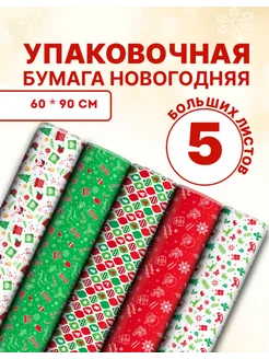 Упаковочная бумага для подарков новогодняя набор 5 шт