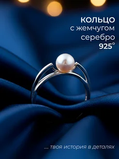 Тонкое ювелирное серебряное кольцо 925 пробы с жемчугом
