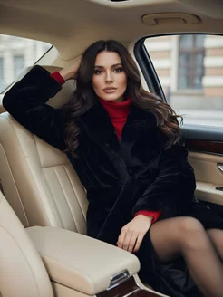 Шуба искусственная черная длинная зимняя с поясом