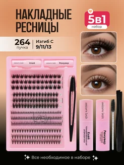 Набор накладных ресниц 264 пучка изгиб C 9 11 13