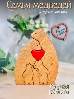 Фигурка-статуэтка семья медведей с двумя детьми из дерева