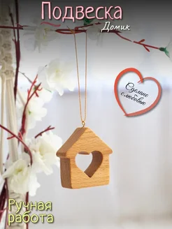 Ёлочная игрушка из дерева Домик с сердечком ручная работа
