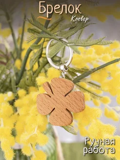 Брелок для ключей Клевер деревянный, талисман на удачу