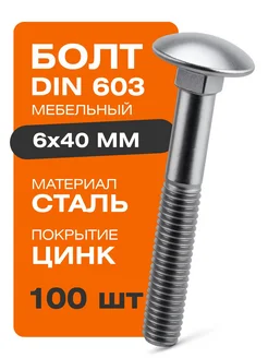 Болты мебельные м6х40 мм DIN 603 100 шт. покрытие цинк