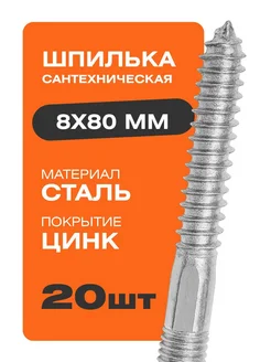 Шпилька сантехническая м8х80 мм 20 шт. стальные цинк