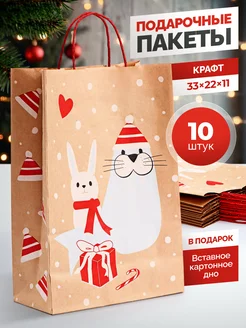 Пакет подарочный новогодний крафт в упаковке, набор 10 штук