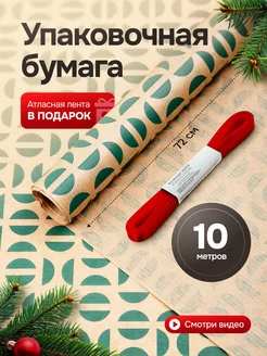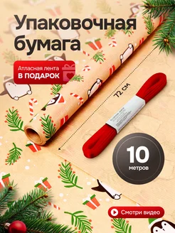 Бумага для упаковки подарков новогодняя крафт рулон 10м