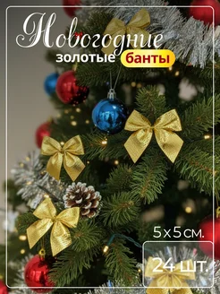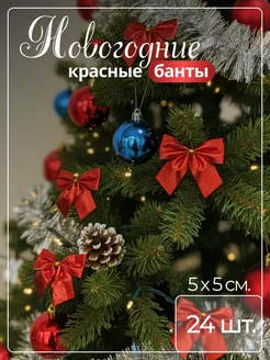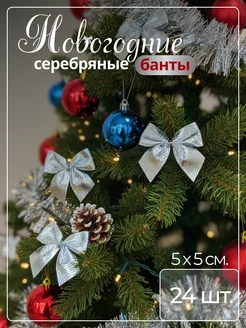Елочные украшения бантики новогодние серебристые 24 штуки