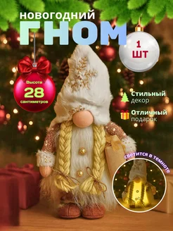 Новогодний декоративный гном под елку светящийся подарок
