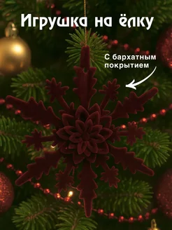 Елочная игрушка снежинка красный бархатный