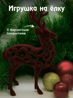 Елочная игрушка олень красный бархатный