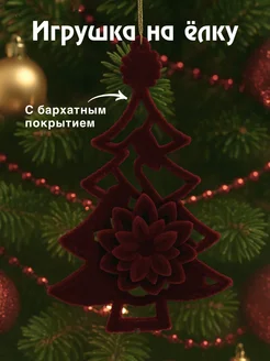 Елочная игрушка елочка красный бархатный