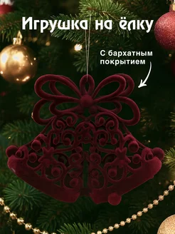 Елочная игрушка колокольчики красный бархатный