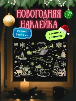 Новогодние светящиеся наклейки на окно большие