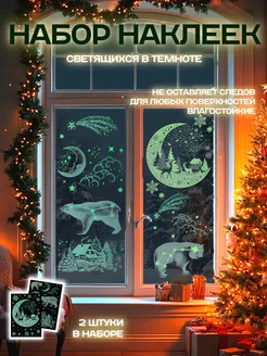 Наклейки Новогодние Светящиеся 2026 -1 (полумесяц + медведи)