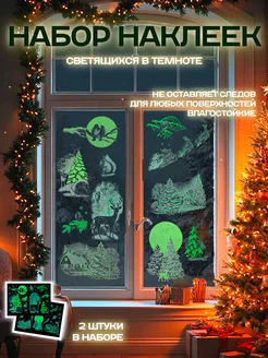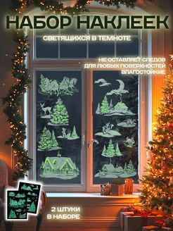 Наклейки Новогодние Светящиеся 2026 -2 (Сани + Олени)