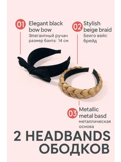 Ободки для волос набор 2шт
