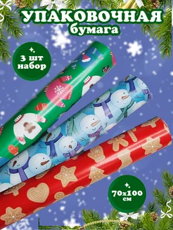 Упаковочная бумага новогодняя для подарков в рулоне 3шт