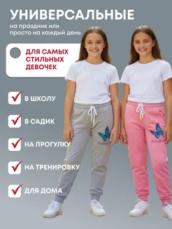 Спортивные штаны для девочек с карманами комплект 2 шт