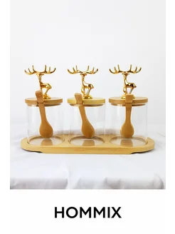 Банка с крышкой из дерева 600 мл с золотым оленем