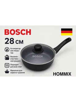 Сковорода BOSCH 28 см с крышкой Антипригарное мраморное