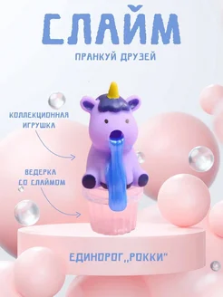 Сиреневый единорог «Рокки» с голубым сверкающим слаймом