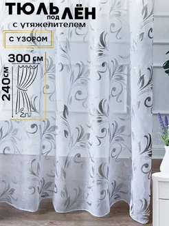 Тюль в зал 300х240 под лен длинный готовый с рисунком
