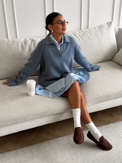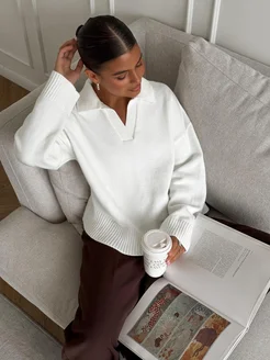 Свитер вязаный оверсайз с воротником поло