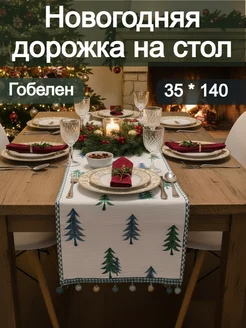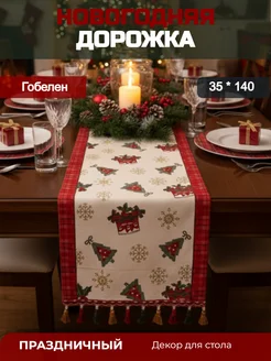 Скатерть тканевая дорожка на стол 35x140 Новогодний декор